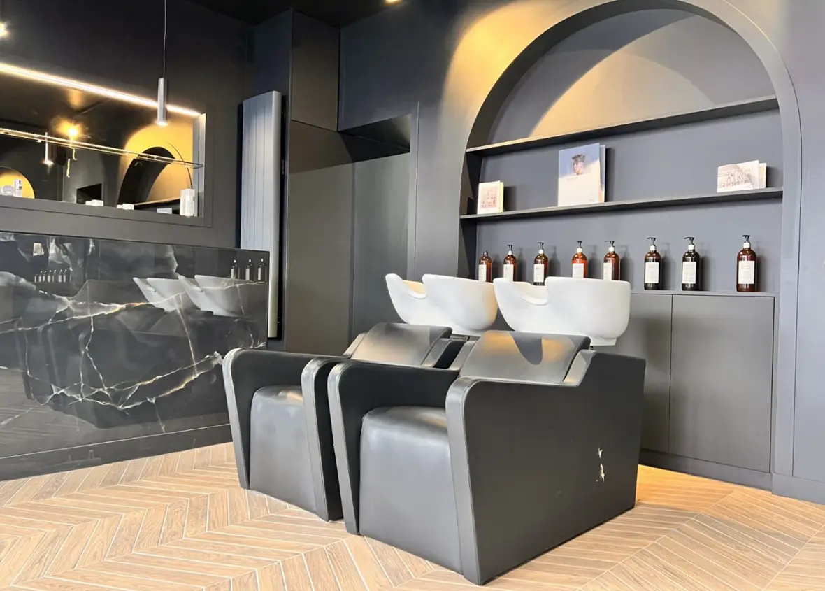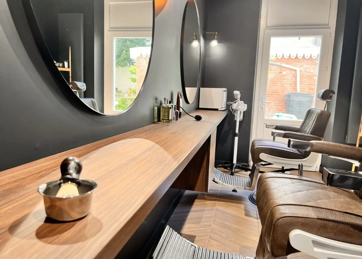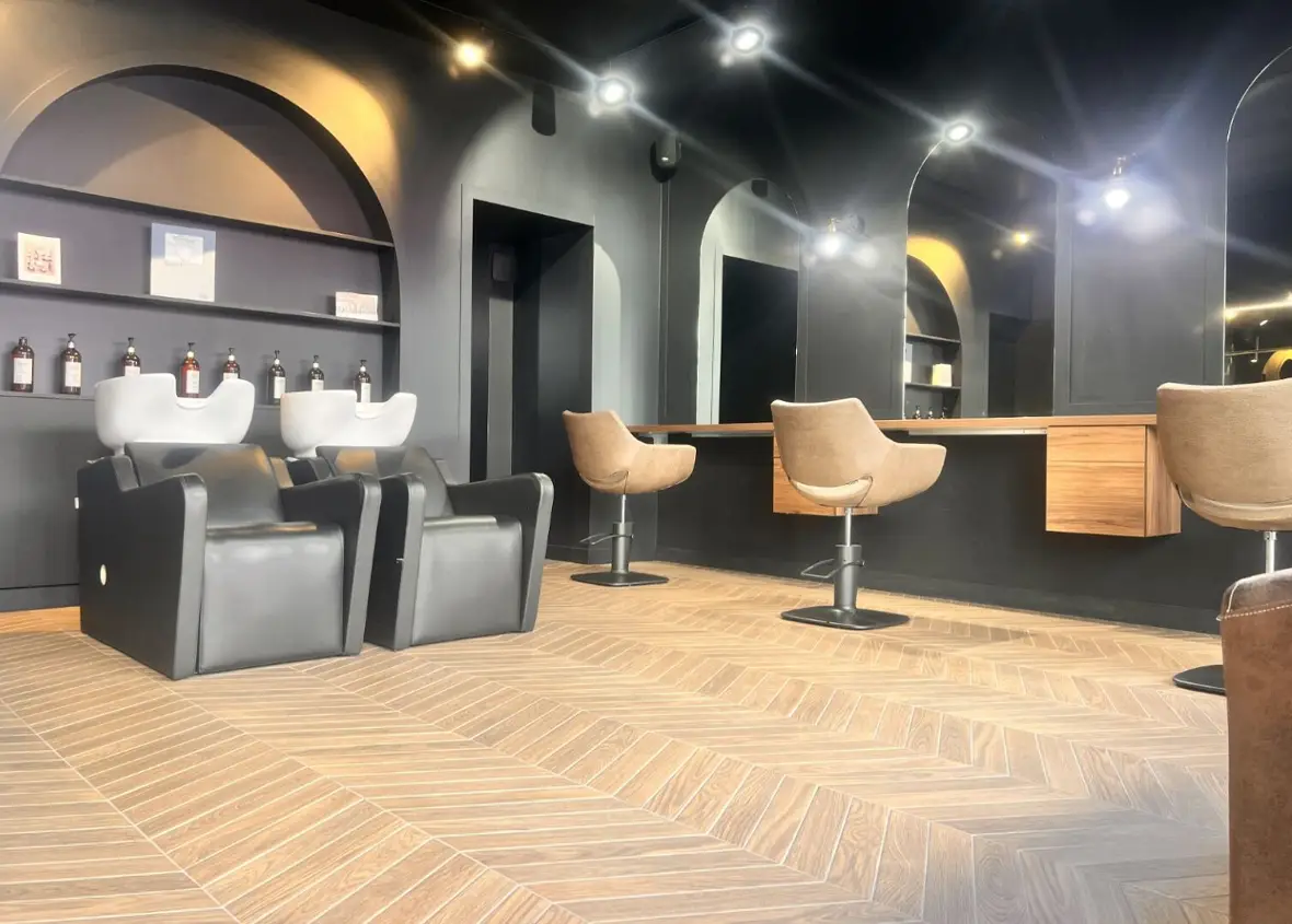 Nous avons accompagné nos clients dans l’aménagement de ce nouveau salon pour hommes, pensé comme un lieu de caractère, élégant et fonctionnel.