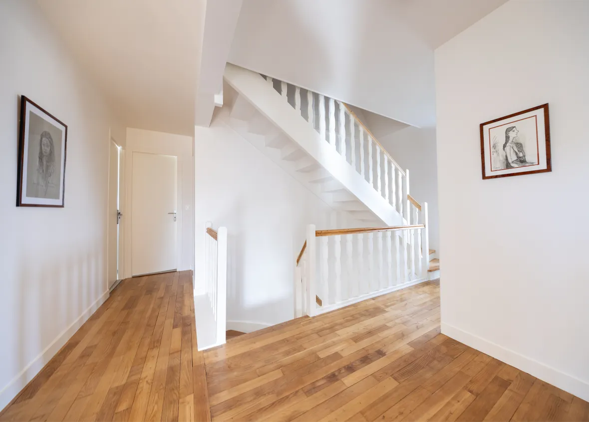 Dans les chambres, les teintes douces, le chauffage neuf et les rangements sur mesure apportent fonctionnalité et harmonie. Parquet, carrelage et finitions sélectionnés avec soin soulignent le caractère de chaque espace.