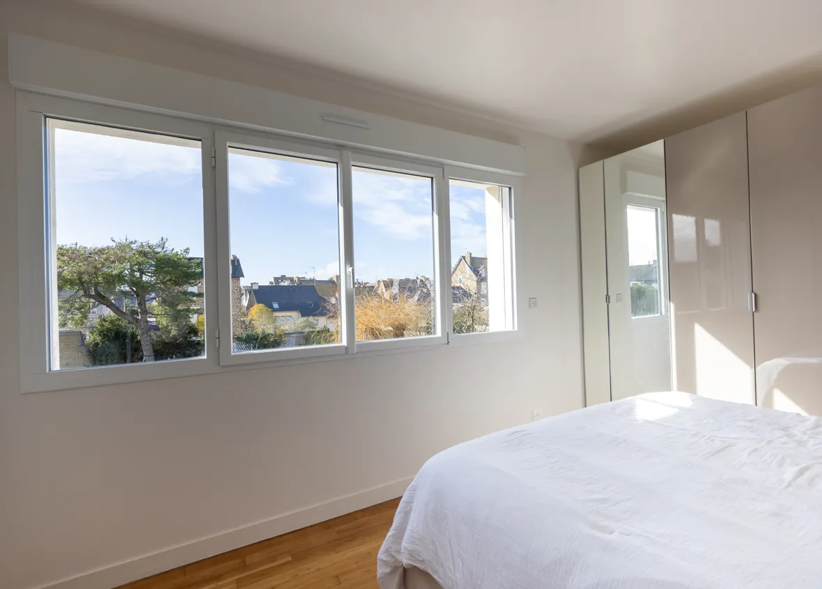 Les menuiseries extérieures ont été intégralement remplacées : portes et fenêtres neuves améliorent significativement le confort thermique et acoustique, tout en apportant davantage de clarté et une esthétique plus actuelle aux façades.